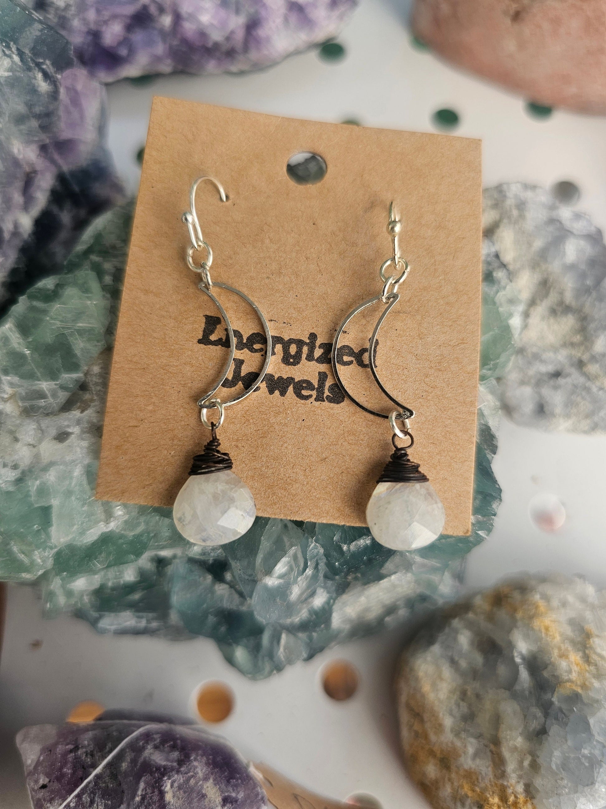 Silver Crystal Moon Earrings | Moonstone Goddess Earrings | Silver Earrings | Crystal Earrings | Blue Gemstone Earrings