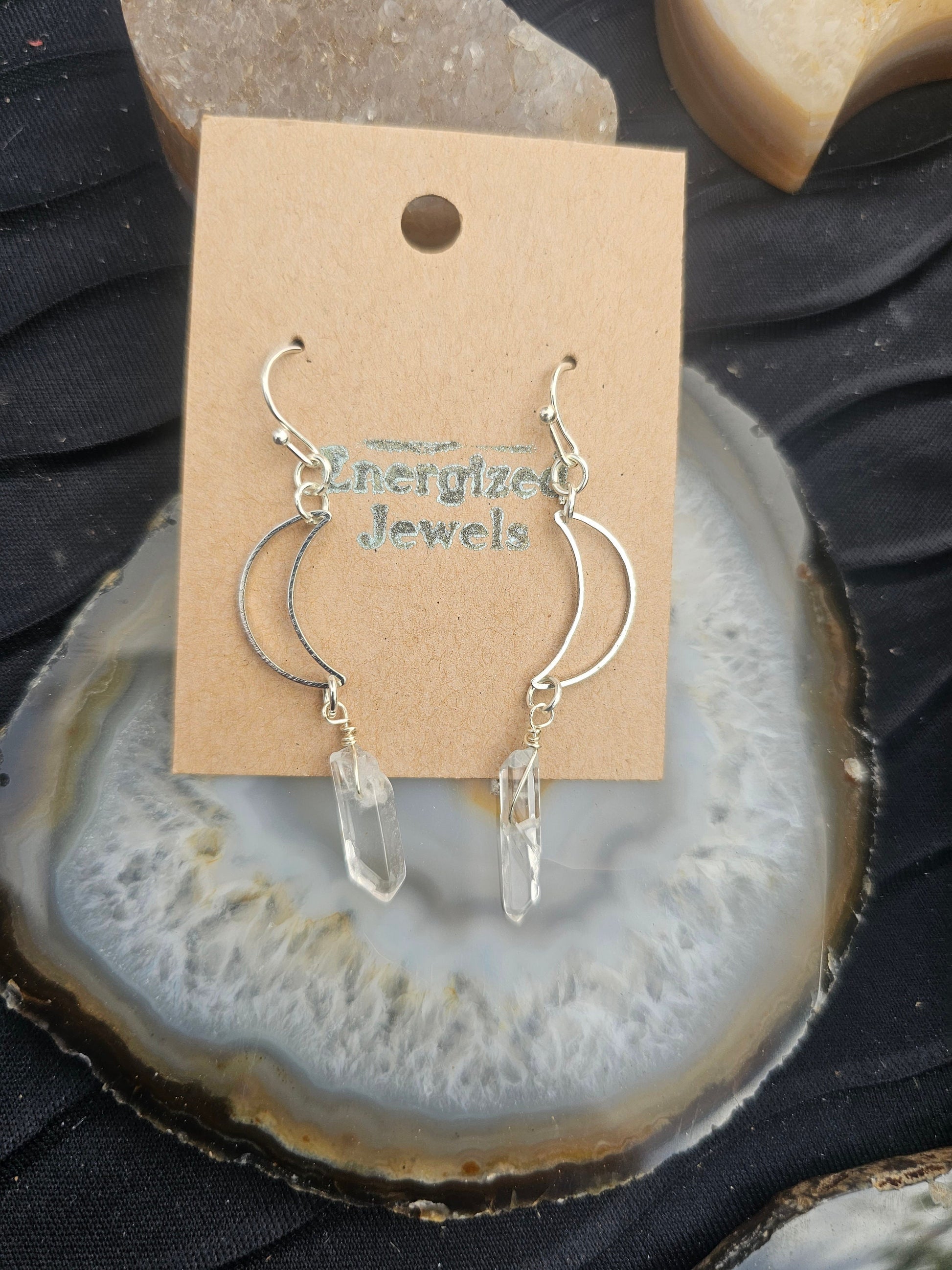 Blue Crescent Moon Earrings | Apatite Moon Earrings | Handmade Silver Gemstone Earrings | Energized Jewelry